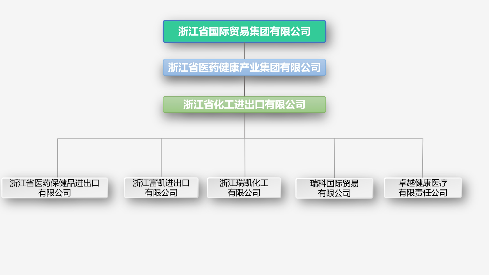 公司注冊資本1.29億元人民幣,共有員工320余人,下設(shè)綜合辦公室、黨委組織部(人力資源部)、財務(wù)部等7個職能部室和17個業(yè)務(wù)部門,擁有浙江省醫(yī)藥保健品進出口有限責(zé)任公司、浙江瑞凱化工有限公司、浙江富凱進出口有限公司、瑞科國際貿(mào)易有限公司(香港)、卓越醫(yī)療健康有限責(zé)任公司(印度尼西亞)等境內(nèi)外全資子公司9家,駐越南辦事處1個,并參股經(jīng)營浙江奧托康制藥股份有限公司(持股比例10%)。